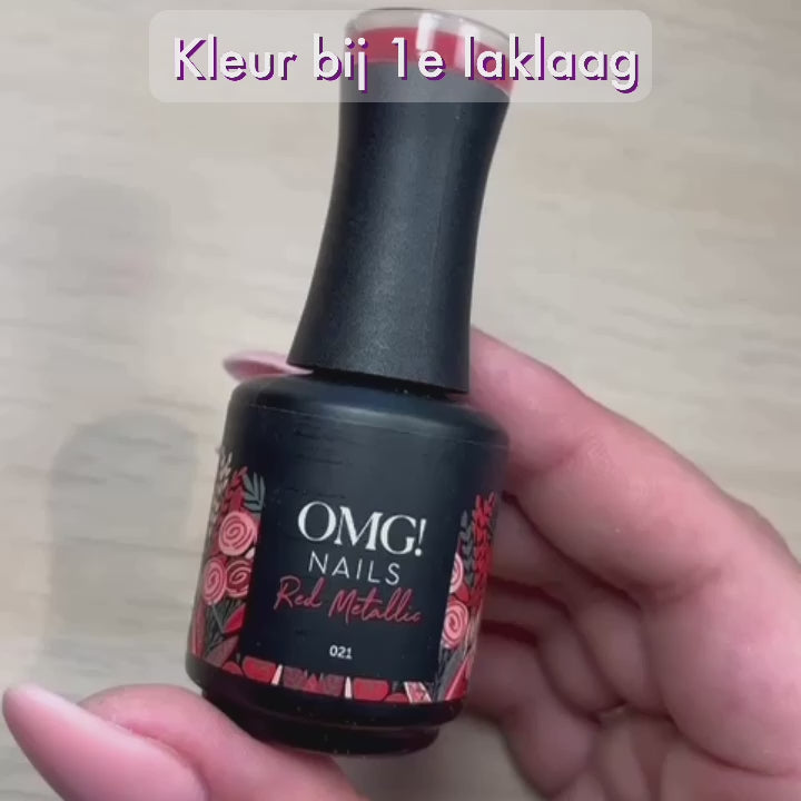 Combine this "Red Metallic" gel polish from OMG! with an elegant black dress or jumpsuit for a glamorous, festive look. The shine of the metallic shade accentuates the luxury of your outfit.